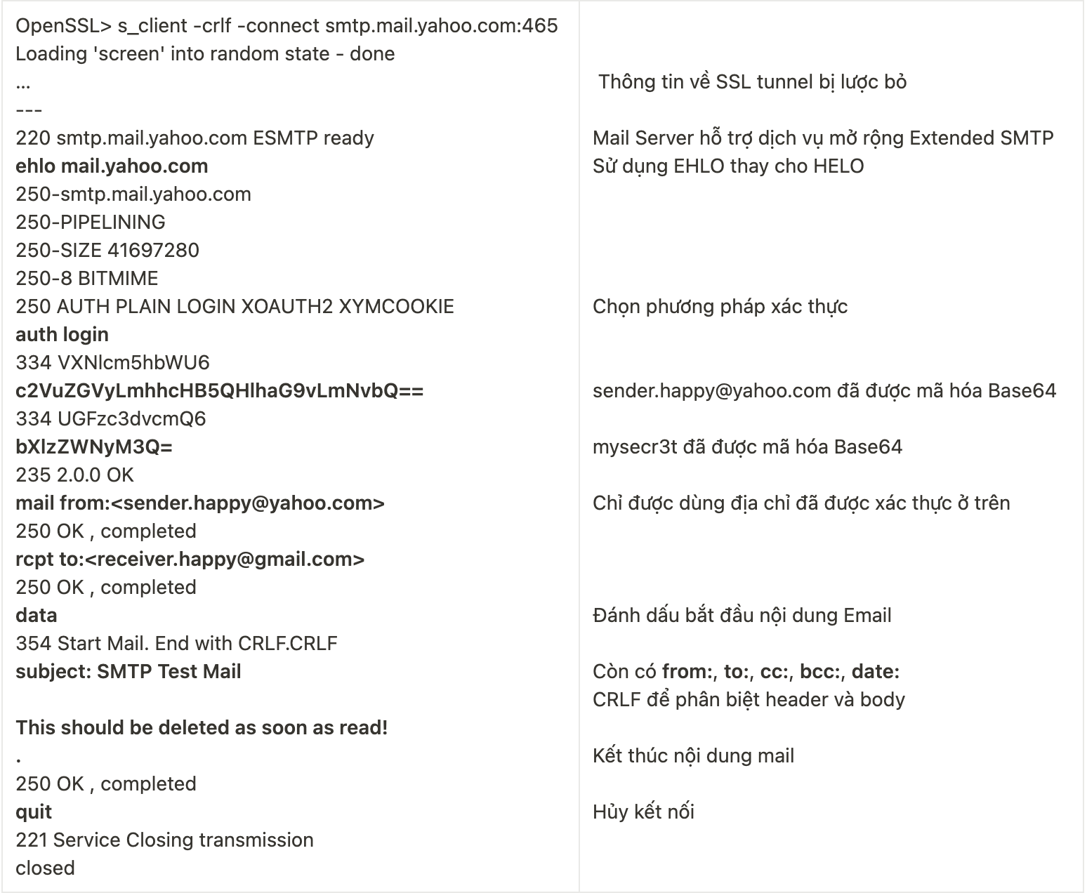 SMTP (Simple Mail Transfer Protocol, RFC 2821) là giao thức gửi email sử dụng kết nối TCP/IP - tin cậy nhưng không bảo mật bằng các ứng dụng email như MS Outlook, Thunder Bird, … tới các máy Email Server và giữa các Email Server với nhau. Email Server sử dụng port 25 mặc định để lắng nghe yêu cầu kết nối từ phía client. Để tăng tính bảo mật, nhà cung cấp dịch vụ email sẽ yêu cầu client gửi đến port 465 hay 587 trên kênh truyền SSL/TSL.