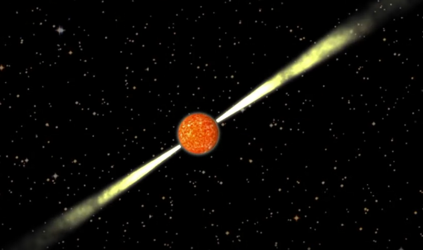 Neutron star is collapsed by its gravity and create magnetic field. The magnetic axis is not align with the rotation axis cause the star to emits radio wave across the universe